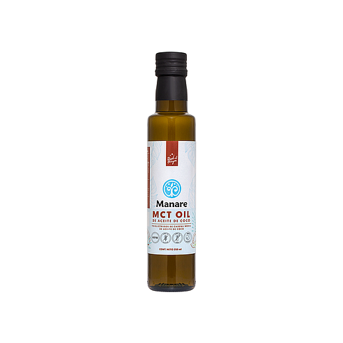 MCT oil es un aceite de coco alto en ácido grasos de cadena media. Estos ácidos grasos se metabolizan en el hígado, sin la necesidad de que el cuerpo use insulina y sin alterar el azúcar en sangre. Es decir, aportan energía inmediata de manera más eficiente que los carbohidratos.